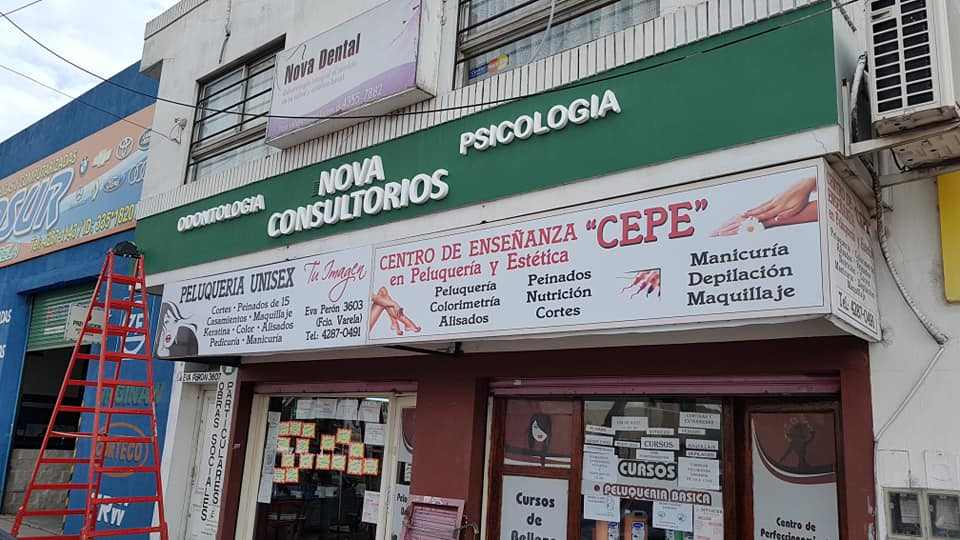 diseño y colocacion sobre chapa trapezoidal, polifan 25mm, impresión en vinilo sobre pvc, con detalle en caño estructural...